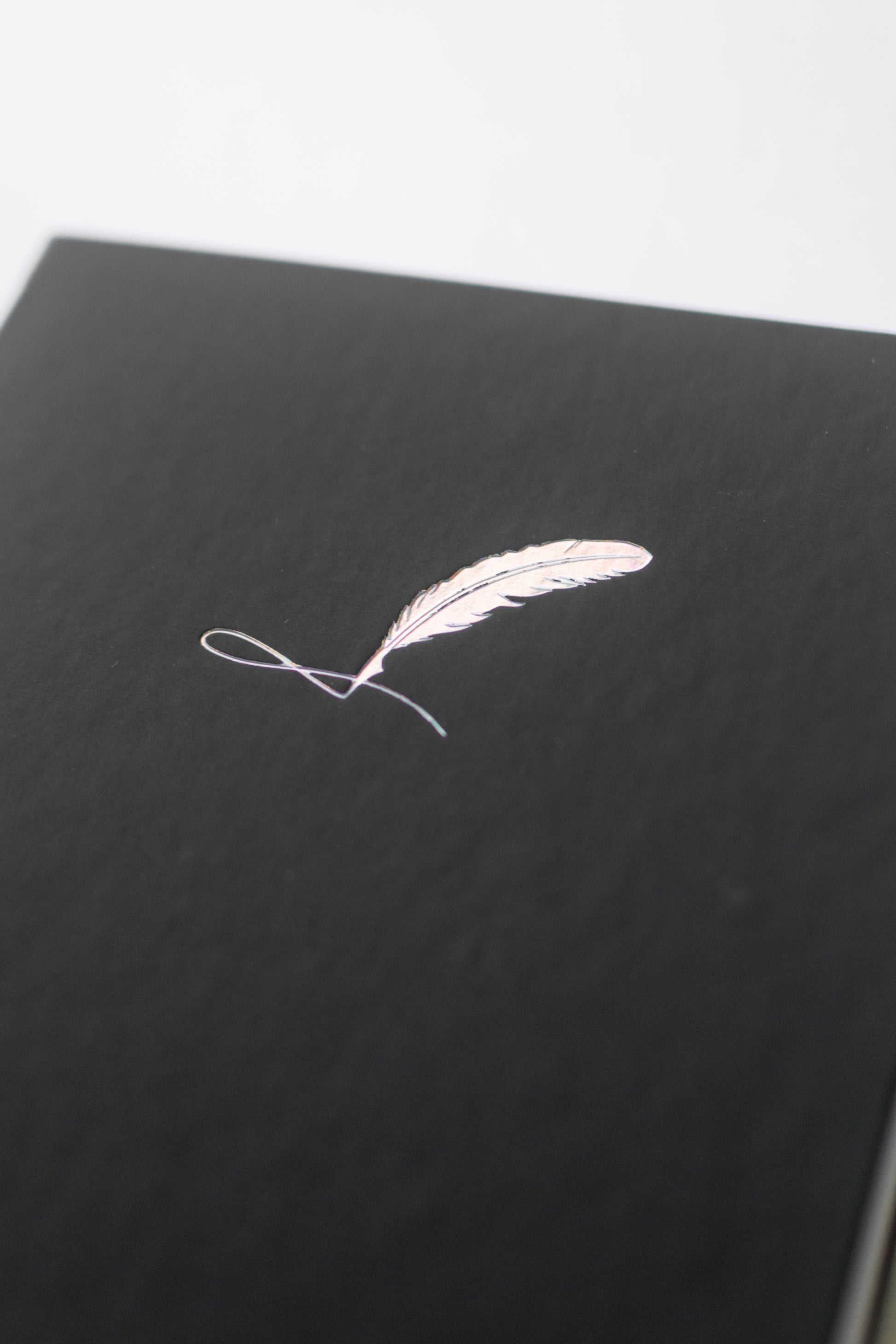Feather Sketchbook is filled with ultra thick blank pages, wrapped in a soft leather cover, decorated with a beautiful silver foil feather design