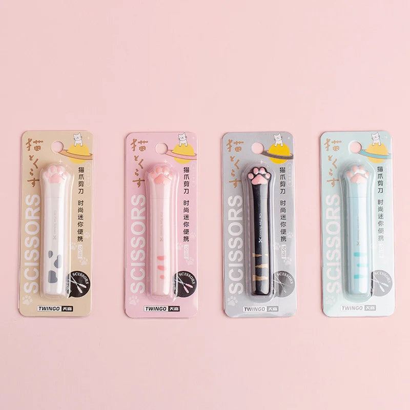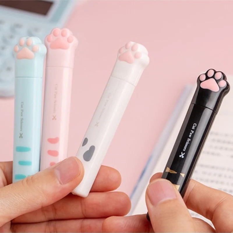 Cat Paw Mini Folding Scissors are the perfect addition to any stationary collection. These scissors feature a cute paw design and a folding mechanism for easy storage and portability. The scissors come in pink, blue, white, and black. These Cute Mini Folding Scissors are not only functional but also add a touch of cuteness to your workspace.