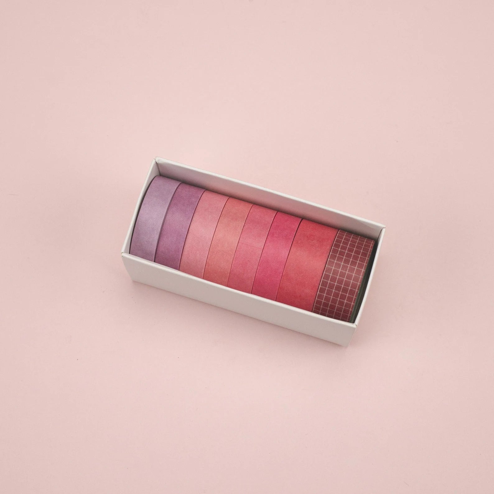 This Washi Tape set inspired by traditional painting colors, includes 7 solid colors and 1 with grid prints. They offer an eye-catching addition to your journals, crafts, scrapbooks, DIY projects and more.