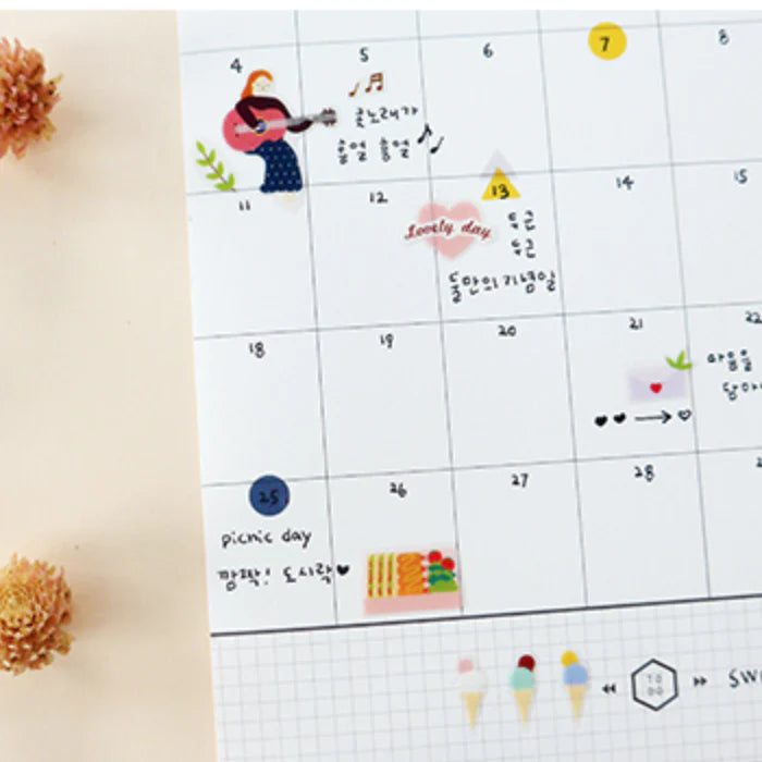 Suatelier is a Korean brand characterized by its fun, whimsical style. Its sticker designs are cute and unique, perfect for mark and decorate your calendar, planner, or journal.