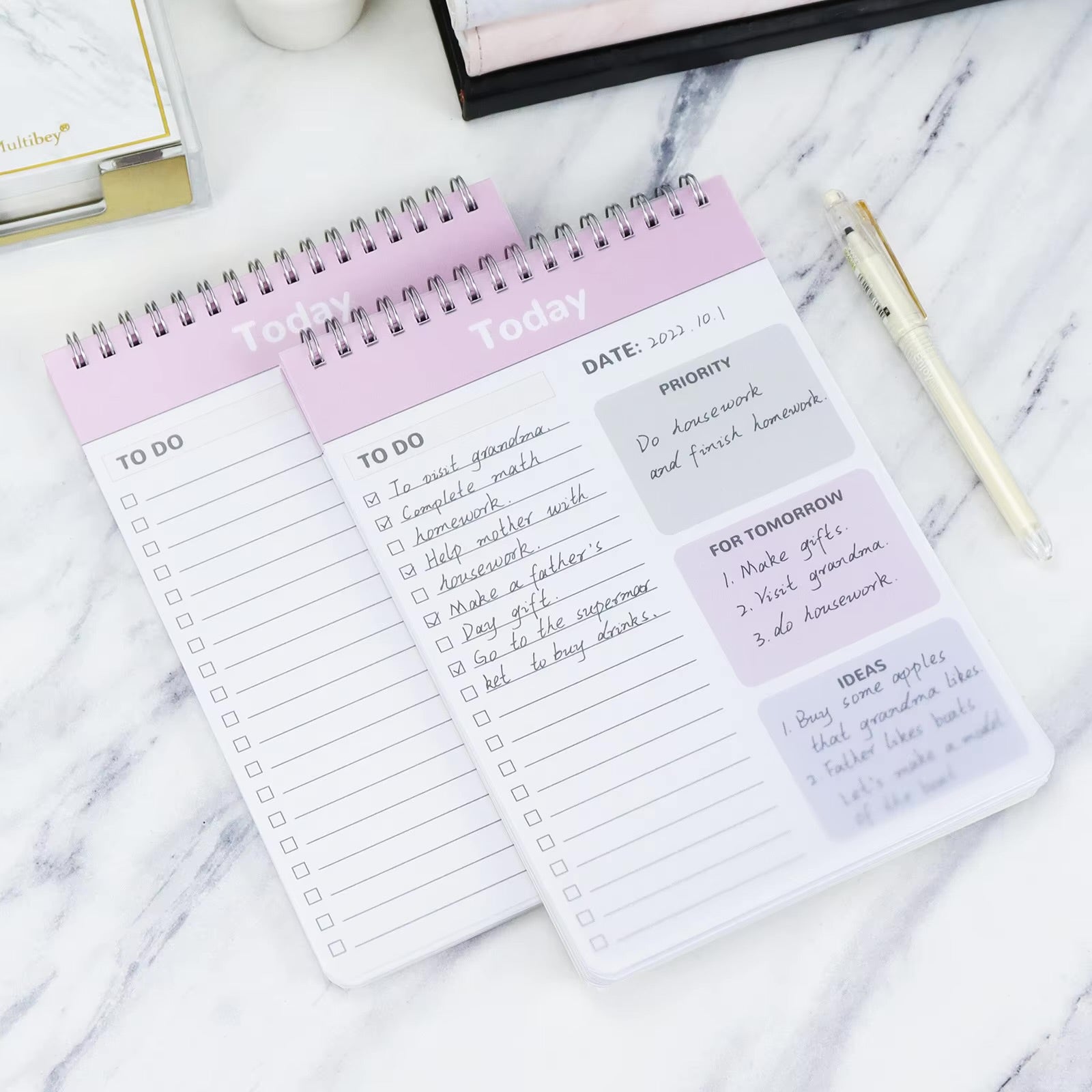 Stay organized and productive with these stylish pastel-colored daily planner notepads. The spiral-bound design allows for easy flipping, while the compact size makes them perfect for desktops or on-the-go planning. With a cheerful pastel theme, they add a vibrant touch to your daily routine. Ideal for students, professionals, and anyone who loves staying organized with a bit of flair.