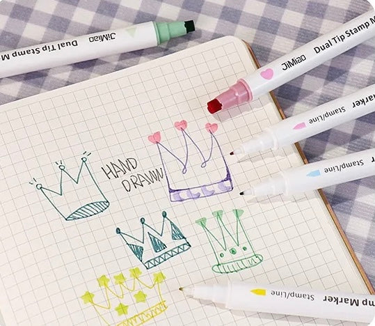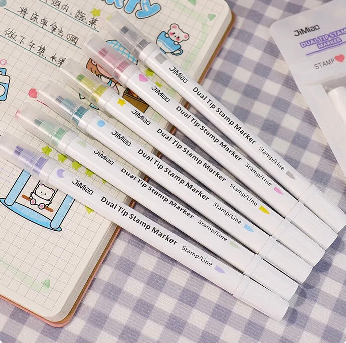 Make your notes and journals extra fun with the JiMiao Dual Tip Stamp Markers! Each pen comes with a dual-tip design—a fine tip for neat writing and doodling, and a cute stamp tip for decorating your pages.