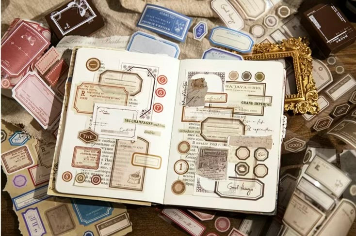 Add a timeless charm to your journal spreads, scrapbook pages with our Vintage Labels Stickers. This beautifully crafted collection features retro-inspired labels in 3 different color themes. Each set includes a mix of rectangular, circular and ticket shaped designs that are perfect for layering or adding a unique accent to any paper project.