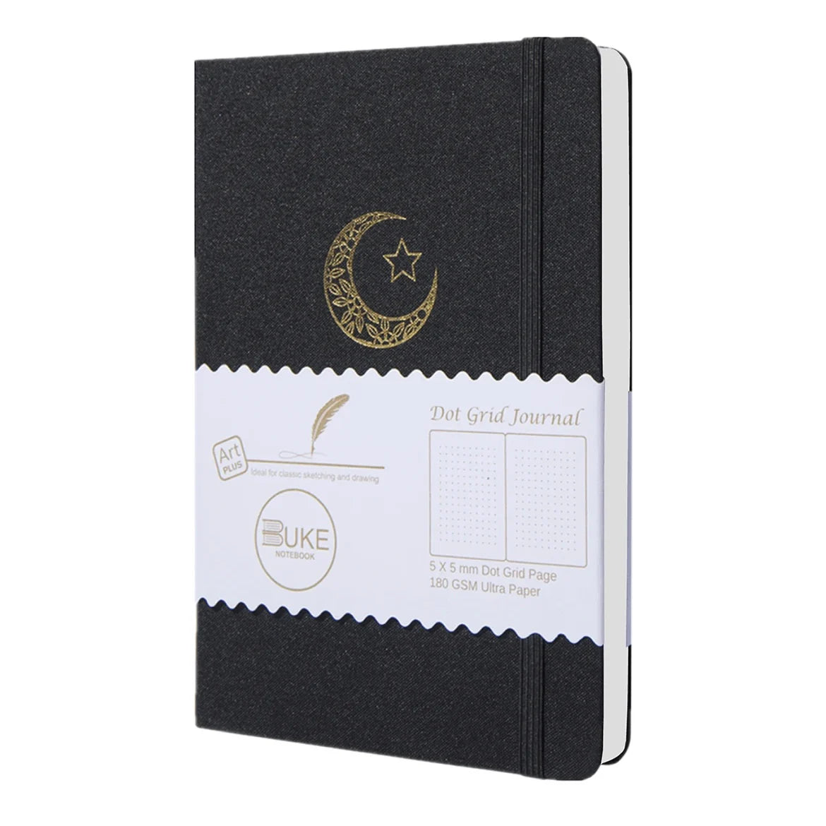Wrapped in a black linen fabric cover, filled with thick bright white dot grid notebook paper + complete with elegant silver etched page edges, this notebook is perfect for bullet journaling, scrapbooking etc!