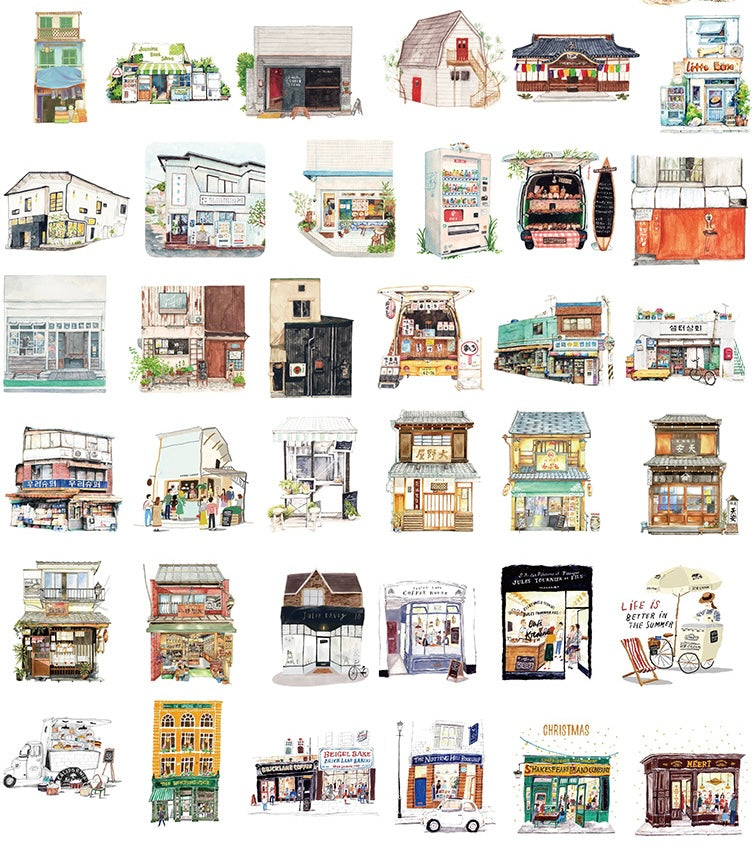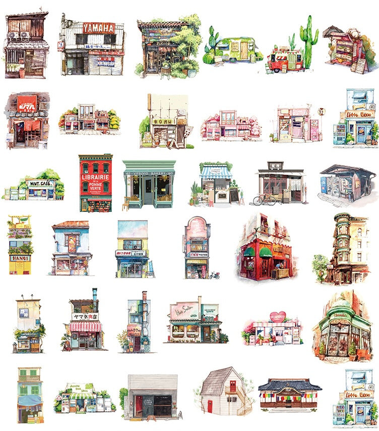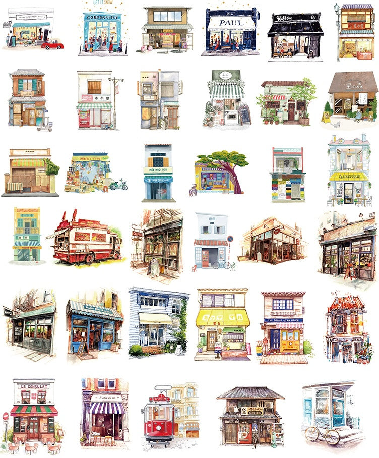 This unique sticker box contains 200 stickers depicting classic street building scenes. Let your creativity soar and bring a little bit of street life history with you wherever you go. Get your Street Hut Sticker Box today!