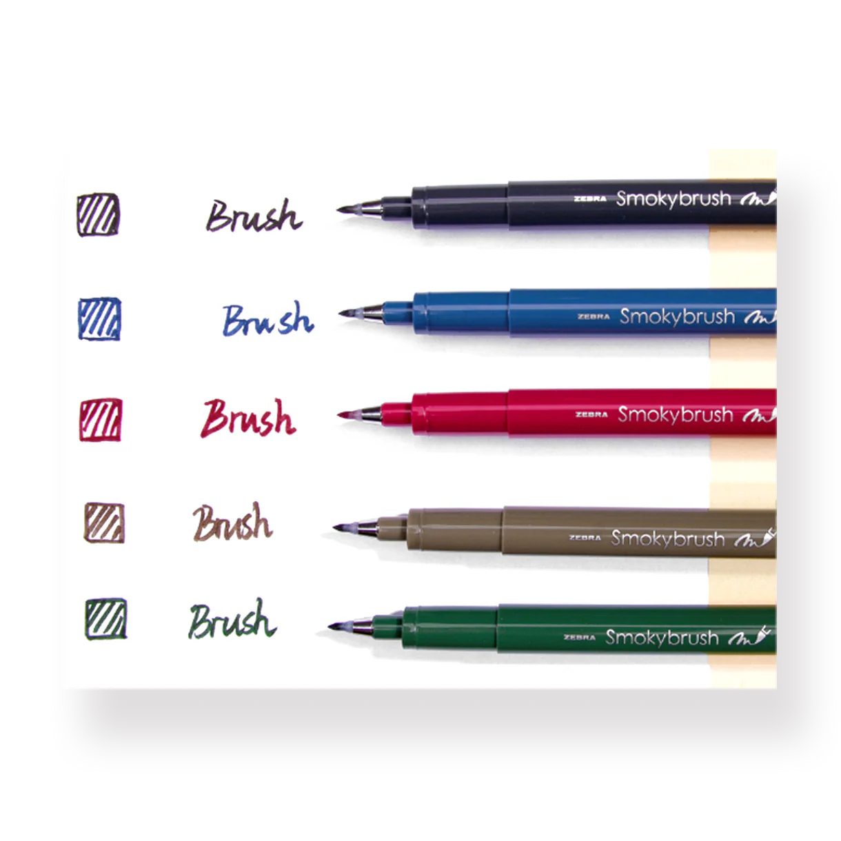 Zebra Smoky Series Soft Brush Pen Set of 5, a high-quality creative tool designed for artists, journaling enthusiasts, and writing aficionados alike. Whether you're crafting exquisite greeting cards, creating journal illustrations, or honing your writing skills, this brush pen caters to your diverse range of creative needs.